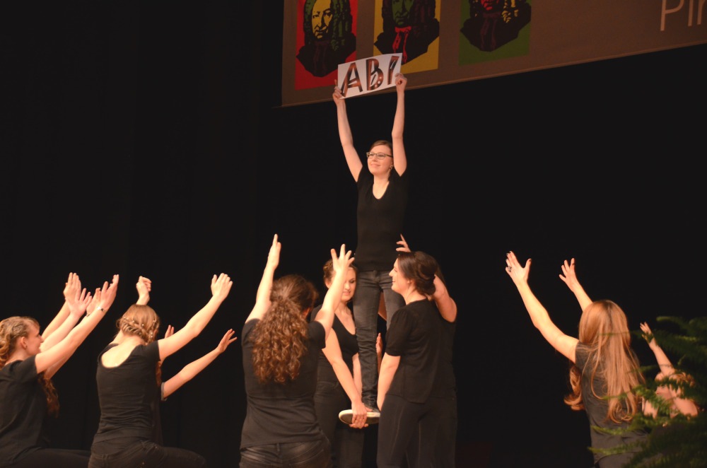 Nach dem reichhaltigen Buffet schloss sich ein stimmungsvoller inoffizieller Teil der Feier an. Eine Band der Abiturientinnen erfreute durch Popmusik, es folgten eine Tanzchoreographie der Abiturientinnen und ein ausgefeiltes Männerballett. Jan Hemmer und Jakob Meyerhöfer performten erneut in fulminanter Spielart eine Jazz-Einlage. Ein Höhepunkt bildeten die ehrlich gemeinten Dankworte für Lehrer, Sekretärinnen und alle an der Feier Beteiligten.