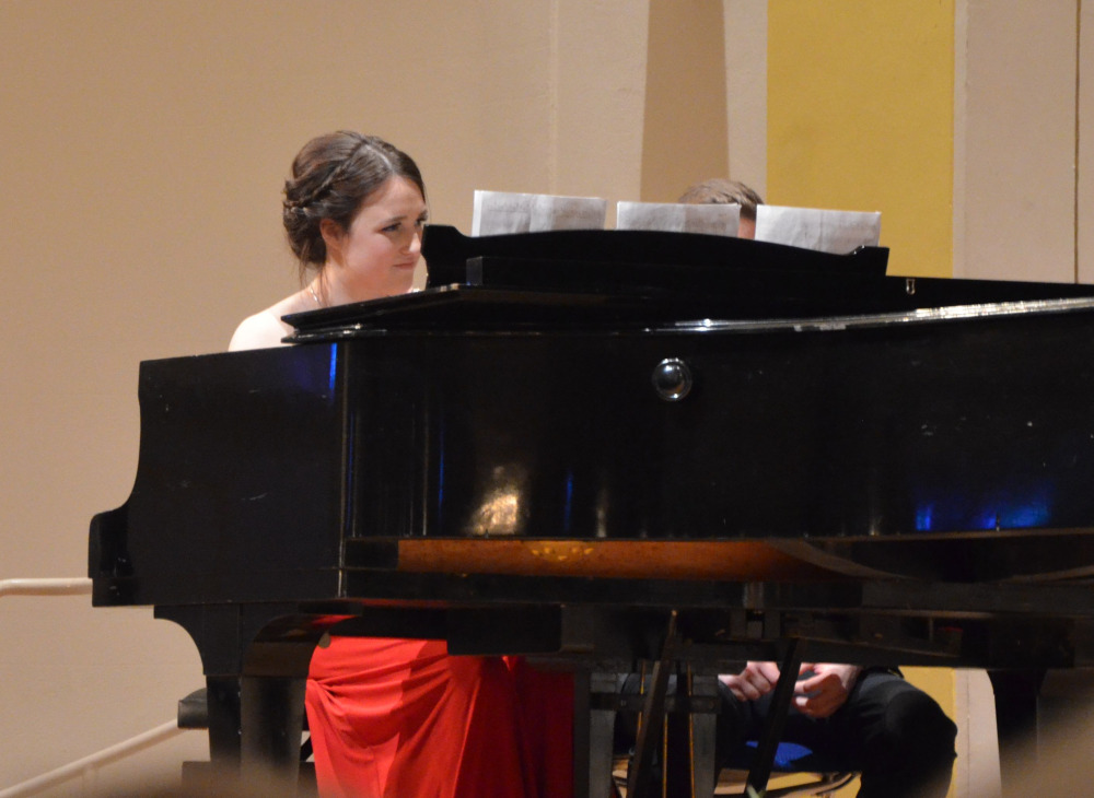 Nach dem Einzug der Abiturienten eröffnete Stefanie Westenweller den Abend mit Chopins Walzer in e-moll und einem virtuosen Spiel am Flügel.