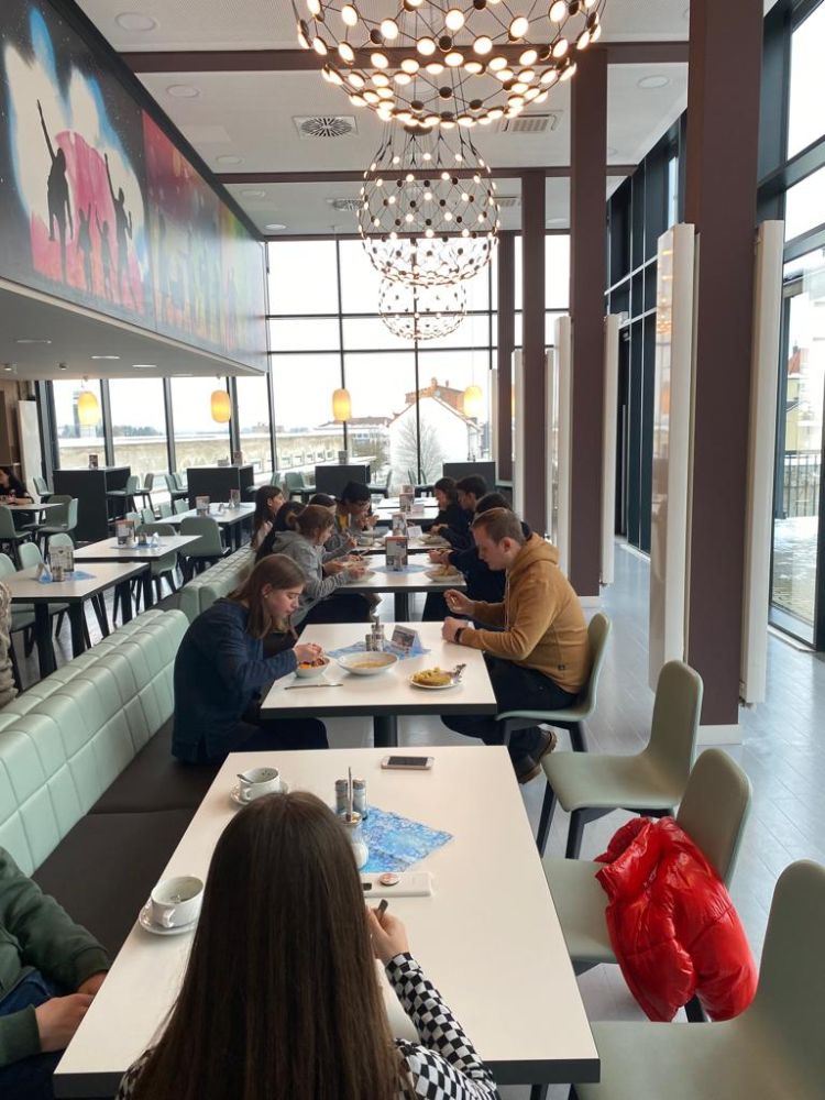 Endlich einmal wieder ein Probentag für den Chor der Klasse/Kurse 8-13! Vor Corona war das immer der Fall, jetzt ist es fast schon etwas Besonderes. Daher fand die Probe auch nicht im Musiksaal statt, sondern erstmals in einem Probenraum der Jugendherberge Pirmasens. Das hieß dann: In netter Atmosphäre entspannt proben und bei einem gemeinsamen Mittagessen gemütlich zusammensitzen und einfach mal miteinander reden und sich besser kennenlernen. Vielleicht kann das zu einer Tradition werden...