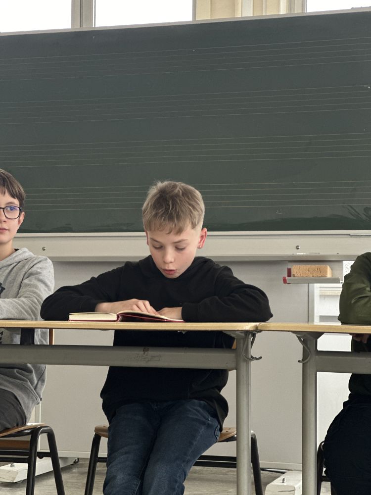 Am 4. Dezember 2023 fand am Leibniz-Gymnasium unser alljährlicher Vorlesewettbewerb der 6. Klassen statt. Die Klassen versammelten sich zunächst im Musiksaal, wo die Kandidaten ihre Texte präsentierten. Vincent Wilhelm (6a) las aus dem Buch "Der Wüstenplanet von Dune" vor, gefolgt von einem Ausschnitt aus "Durch die Zeit - Kampf der Dinosaurier" von Thilo Petry-Lassak, vorgetragen von Noel Diehm (6b). Abschließend las Ben Keller (6c) aus "Das Buch der seltsamen Wünsche" von Angie Westhoff vor.