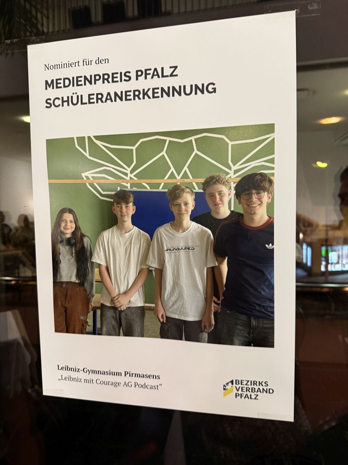 Der Bezirksverband Pfalz würdigte unseren Podcast über die Schulveranstaltung vom 8. November 2024 mit der Schüleranerkennung des Medienpreises Pfalz. Neben den 500 Euro Preisgeld für unsere AG-Kasse freute uns vor allem, gesehen und gehört zu werden. Denn was unsere Schülerinnen und Schüler jedes Mal tun, hat viel mit Courage zu tun. Wir wissen, dass unsere Schulgemeinschaft reich an Menschen mit einem klaren, demokratisch geprägten moralischen Kompass ist – doch sich damit in eine digitale und permanente Öffentlichkeit zu begeben, bedeutet für junge Menschen ohne gefestigtes berufliches Fundament auch ein Risiko. Gerade in einer Zeit, in der in den sozialen Medien die lauten und extremen Stimmen immer mehr Raum gewinnen, ist es umso wichtiger, dass auch die reflektierten, demokratischen Stimmen dieser Generation Gehör finden. Umso dankbarer sind wir, dass dies gestern in Kaiserslautern geschehen ist.