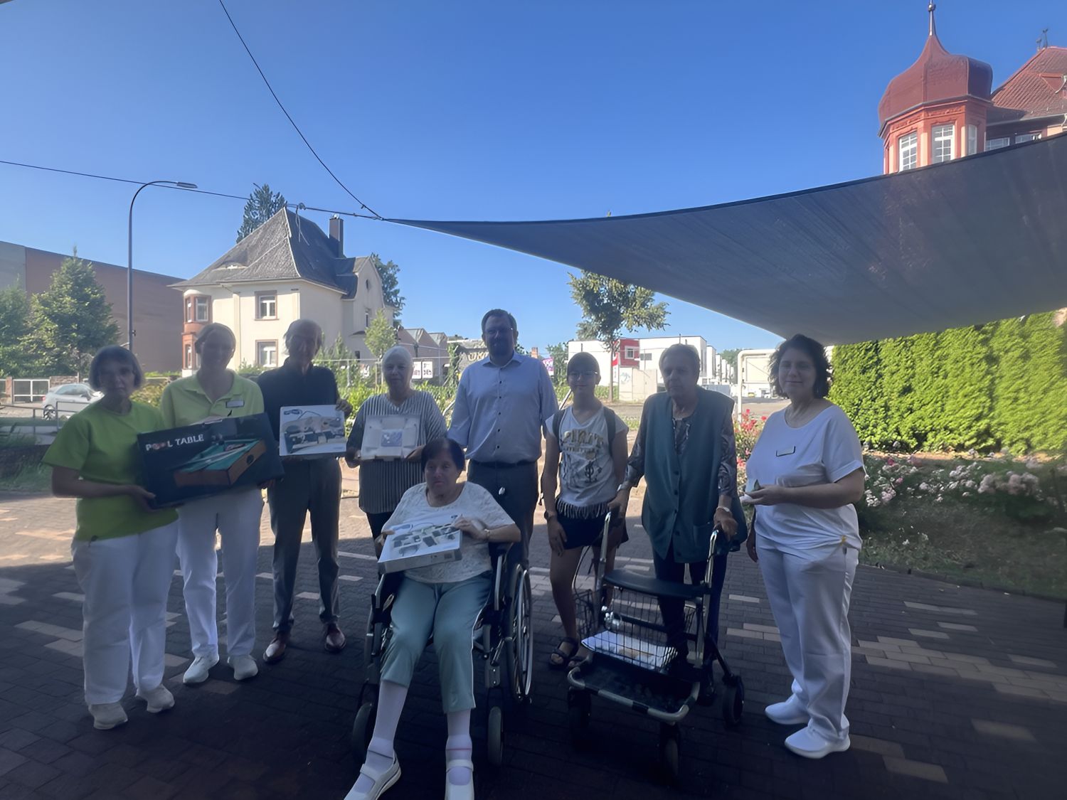 Nun war es endlich wieder soweit und zwei Einsätze standen an: Zum einen wurde die Pfandbox zum Halbjahreswechsel geleert, zum anderen wurden von dem im Schuljahr 2024/2026 gesammelte Pfandgeld Wünsche der Bewohnerinnen und Bewohner der Seniorenzentrums "Villa Sertel" erfüllt. Diesen Spendenzweck hatten die Teilnehmerinnen der AG festgelegt.