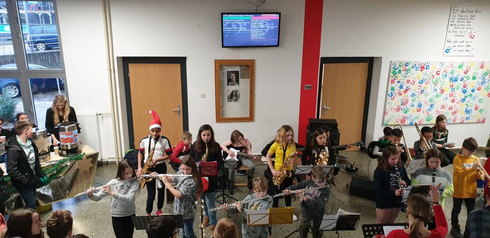 Die BigBand-Klasse ist ein freiwilliges Angebot in der Stufe 5 und 6. Die Kinder haben dann eine Musikstunde mehr und auch der Instrumentalunterricht in Kooperation mit der Kreismusikschule wird über uns organisiert. Damit können die Kinder mit sehr geringen Kosten ein Instrument lernen - auch das wird von der Schule zur Verfügung gestellt.